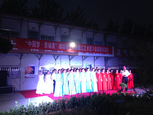 2016年5月27日晚,濰坊市總工會(huì)“中國(guó)夢(mèng)?勞動(dòng)美職工藝術(shù)團(tuán)下基層慰問演出”在集團(tuán)自行開發(fā)、建設(shè)中的泰和東郡工程現(xiàn)場(chǎng)辦公區(qū)進(jìn)行。演出從晚上七點(diǎn)半開始,在一個(gè)半小時(shí)的時(shí)間里,這個(gè)40人的藝術(shù)團(tuán)共演出包括獨(dú)唱、合唱、舞蹈、朗誦等節(jié)目在內(nèi)的12個(gè)節(jié)目。在盛夏即將到來(lái)的夜晚,讓職工藝術(shù)沁潤(rùn)施工現(xiàn)場(chǎng)的勞動(dòng)者。