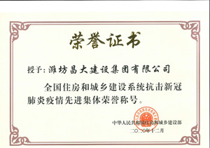 近日,中華人民共和國住房和城鄉(xiāng)建設(shè)部通報(bào)表彰并頒發(fā)證書、獎(jiǎng)牌,表彰全國住房和城鄉(xiāng)建設(shè)系統(tǒng)抗擊新冠肺炎疫情先進(jìn)集體。集團(tuán)因在新冠肺炎疫情防控工作中的履職擔(dān)當(dāng)和出色作為被濰坊市住建局和山東省住建廳推薦而獲此殊榮。