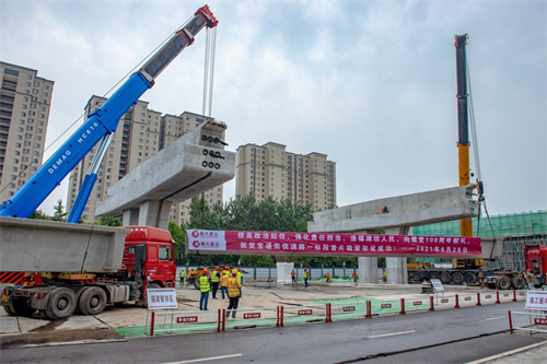 2021年6月29日,在中國共產黨即將迎來百年華誕之際,集團承建的寶通街一標段高架快速路工程迎來了一個重要而關鍵節點——預制箱梁吊裝。夏日早晨,微風習習,綠樹成蔭,鳥語花香。按照計劃流程和吊裝手冊,第一片箱梁于上午7:06正式起吊,在“提高政治站位,強化責任擔當,造福濰坊人民,向建黨100周年獻禮!”、“祝賀寶通街快速路一標段首片箱梁架設成功!”兩幅昌大格式化標語映襯下,7:36順利吊裝到位。至此,集團承建寶通街高架快速路工程進入新的施工階段。