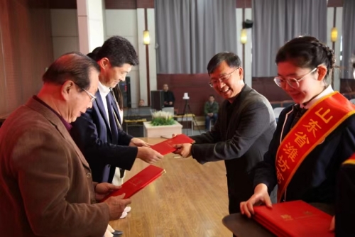 會上,濰坊一中校長張年勇為徐鵬強董事長頒發了會長聘書,徐鵬強董事長作了當選發言。隨后,徐鵬強董事長作為新一任會長為顧問代表、常務副會長、副會長代表、秘書長、副秘書長代表頒發了聘書。