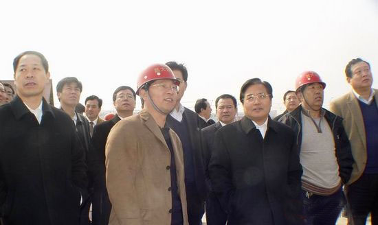 上圖右三為張新起書記在體育場南入口二樓平臺,前左一為建設(shè)局局長李廣東,前左二為董事長徐鵬強,前右一為體育局局長耿文,前右二為集團公司孫孔喜。 市委書記張新起再次視察奧體中心體育場工程 3月3日上午,市委書記張新起在市建設(shè)局局長李廣東,規(guī)劃局局長張恒道,體育局局長耿文等同志的陪同下視察了集團公司承建的奧體中心體育場工程。 集團公司董事長徐鵬強,集團公司奧體中心現(xiàn)場總指揮孫孔喜陪同視察。在視察過程中,孫孔喜對施工情況做了簡要的匯報。張書記對施工進度和質(zhì)量及安全施工情況表示滿意,對施工現(xiàn)場的施工細(xì)節(jié)提出更高的要求,如入口樓梯的花壇與地面交接處要做防水處理,花崗巖鋪裝的縫隙要均勻一致。對張書記提出的要求孫總立即做了安排落實。(09.03.03) |