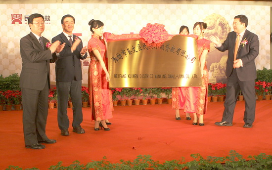 1月22日上午,由集團(tuán)公司控股設(shè)立的濰坊市奎文區(qū)民興小額貸款有限公司,在濰坊國際金融大廈舉行了隆重的開業(yè)儀式。參加開業(yè)慶典儀式的有山東省財政廳副廳長龐敦之及民生銀行山東省分行行長馬琳,濰坊市人民政府副市長夏芳晨及市金融辦、市財政局、市銀監(jiān)局、市人民銀行等市直單位、部門負(fù)責(zé)人,奎文區(qū)委副書記、區(qū)長李輝,副區(qū)長賈平及奎文區(qū)金融辦負(fù)責(zé)人,市工商銀行、中國銀行、交通銀行、農(nóng)信聯(lián)社、中信銀行、招商銀行、農(nóng)業(yè)銀行、建設(shè)銀行、濰坊銀行、華夏銀行、民生銀行、浦發(fā)銀行等市銀行系統(tǒng)負(fù)責(zé)人,駐奎文區(qū)的金融機構(gòu)中國銀行、工商銀行、建設(shè)銀行、濰坊商行、農(nóng)業(yè)銀行、新華路農(nóng)信聯(lián)社等負(fù)責(zé)人,泰華集團(tuán)、博悅地產(chǎn)、東方鋼管、中百集團(tuán)等集團(tuán)公司重要客戶主要負(fù)責(zé)人,華和擔(dān)保公司、巨鑫擔(dān)保公司、水建總公司、恒泰擔(dān)保公司、泰翔商貿(mào)公司、奇正商務(wù)咨詢公司、博揚投資咨詢公司、吾愛設(shè)計有限公司、南京龍蟠石化濰坊分公司、速比達(dá)連鎖汽修總經(jīng)理等重要相關(guān)客戶,濰坊市建設(shè)局局長李廣東及局領(lǐng)導(dǎo)班子全體、局機關(guān)各科室主要負(fù)責(zé)人、局屬各單位主要負(fù)責(zé)人,集團(tuán)公司董事長、民興小額貸款公司董事長徐鵬強,民興小額貸款公司股東單位負(fù)責(zé)人,集團(tuán)公司高管層領(lǐng)導(dǎo)滕忠斌、李坤明、姜建魯、穆乃杰、張學(xué)智、閆鵬,總經(jīng)理助理張修雙、譚瑞明,總部部門負(fù)責(zé)人、各基層單位(子公司)經(jīng)理書記共計170余人參加了開業(yè)慶典儀式。 ![]() 市金融辦主任李傳順宣讀省金融辦同意公司設(shè)立方案的批復(fù) ![]() 董事長徐鵬強匯報公司籌建情況 ![]() 奎文區(qū)區(qū)委副書記、區(qū)長李輝致辭 ![]() 濰坊市副市長夏芳晨講話 ![]() 省財政廳廳長龐敦之、民生銀行省分行行長馬琳、副市長夏芳晨揭牌
