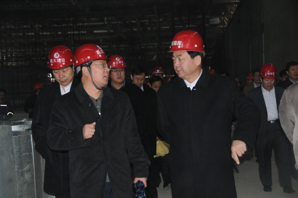 3月1日下午,濰坊市委書(shū)記許立全在市領(lǐng)導(dǎo)劉德成、夏芳晨、王樹(shù)華及市直有關(guān)部門(mén)和濰城區(qū)主要負(fù)責(zé)同志陪同下,冒雨視察了集團(tuán)公司承建的魯臺(tái)經(jīng)貿(mào)會(huì)展中心工程。集團(tuán)公司董事長(zhǎng)徐鵬強(qiáng)、會(huì)展中心現(xiàn)場(chǎng)總指揮孫孔喜全程陪同視察。