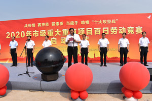 2020年7月10日上午,由濰坊市總工會和市住建局主辦的“戰疫情、賽技能、強素質、當能手、助推‘十大攻堅戰’2020年市級重大項目百日勞動競賽”在濰坊市站南廣場片區舉行啟動儀式。市人大常委會副主任、市總工會主席張新強,濰城區委書記趙學坤,市住建局黨組書記、局長王教法等出席啟動儀式并參觀八建公司、鳶港公司承建的濰坊火車站南站房站前廣場工程。