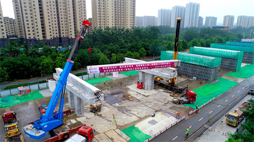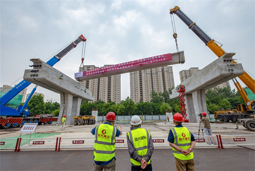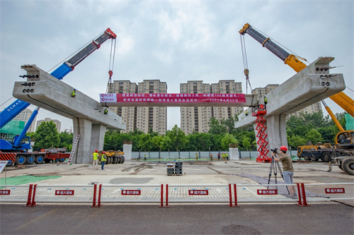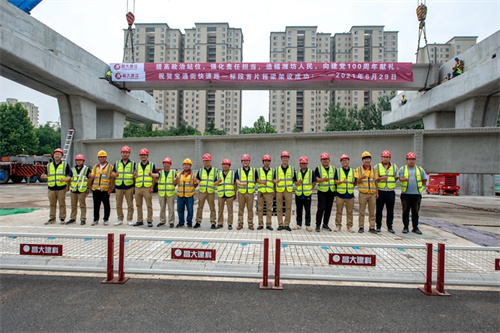 熱烈祝賀集團寶通街快速路工程第一片預制箱梁順利吊裝完成