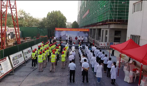 2022年9月28日上午9點58分,由集團四建公司總承包施工的東營市臨床醫技綜合實踐基地一體化建設項目——臨床醫技綜合樓封頂儀式在項目現場隆重舉行。 東營市人民醫院黨委書記徐新生、院長張振海、副院長岳長春,集團公司董事長徐鵬強、副總裁王建波,山東新開元建設項目管理有限公司董事長宗輝出席封頂儀式。東營市人民醫院黨委書記徐新生宣布“封頂”。 參加封頂儀式的還有:集團安裝公司總經理劉志偉、裝飾幕墻公司總經理付光文,四建公司副總經理叢興杰、總經理助理馬康文,建設、監理、集團四建公司等相關單位員工代表100余人。