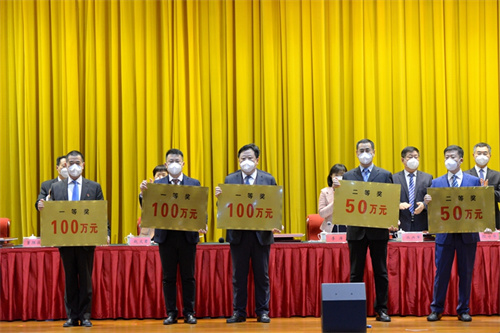 徐鵬強董事長榮獲高新區突出貢獻企業家 集團總裁朱九洲參會并代為領取獎牌
