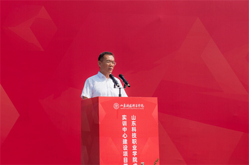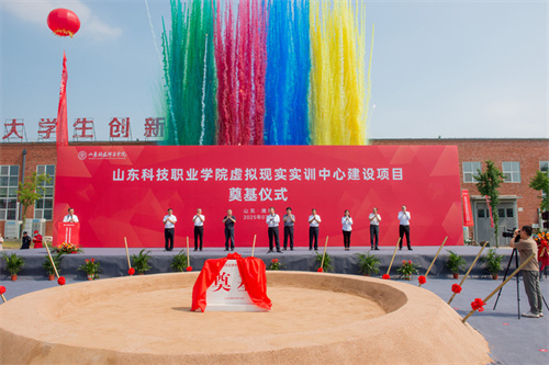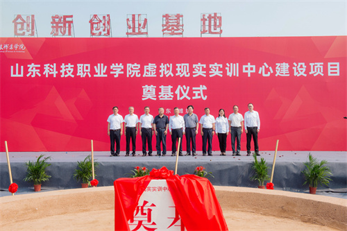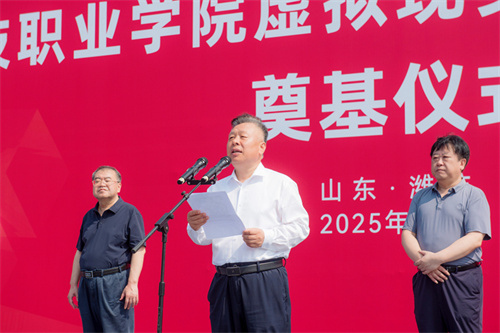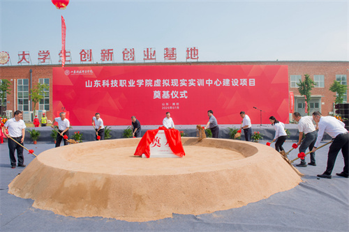 2025年7月17日上午,山東科技職業(yè)學(xué)院虛擬現(xiàn)實(shí)實(shí)訓(xùn)中心項(xiàng)目奠基儀式在項(xiàng)目現(xiàn)場(chǎng)隆重舉行。學(xué)院黨委書(shū)記鄭德前,集團(tuán)公司總裁朱九洲,山東省工程咨詢?cè)狐h組成員、副院長(zhǎng)何健,山東建筑大學(xué)設(shè)計(jì)集團(tuán)有限公司董事長(zhǎng)、總經(jīng)理李端杰,招商銀行濰坊分行黨委書(shū)記、行長(zhǎng)潘兆強(qiáng),學(xué)院黨委委員、紀(jì)委書(shū)記秦建坤,學(xué)院黨委委員、副校長(zhǎng)徐曉雁、董傳民,學(xué)院副校長(zhǎng)張振東出席奠基儀式。